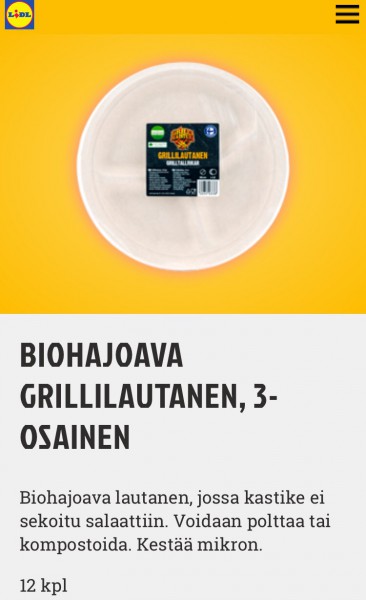 Vertasin posliini/keramiikka/lasiastiastoa melamiinisiin/muoviin - en kertakäyttöisiin  Karavaanihilpetööri kaupoissa myytävät "näköisastiastot" ovat noita.. Kertakäyttöistä (pahvi) suosin vain nuotio hommissa. Kyllä on meillä useita vuosia melamiiniset pysynyt hyvin vähillä naarmuilla - mihin auttaa se, että metalliset aterimet (á la Iikkea) ovat tylsät  - vain pari oikeaa lihaveistä mukana.. Ainakin meillä himassa Ikean valkoisten arkilautasten "lasitus" jotain kummaa kun kevyelläkin "metallityöskentelyl lä" piirtelee mustia viivoja täyteen  Mutta eihän mikään ole turvallista, edes melamiiniset http://www.hs.fi/tiede/a1305643055707Edit; yksi syy meillä on tiskattavien käyttämiseen kertakäyttöisten sijaan puska- ja reissuhommissa on roskiksen tyhjennysväli. Se on useita päiviä kun ei siitä löyhkäävää kompostia tee