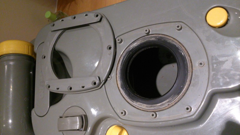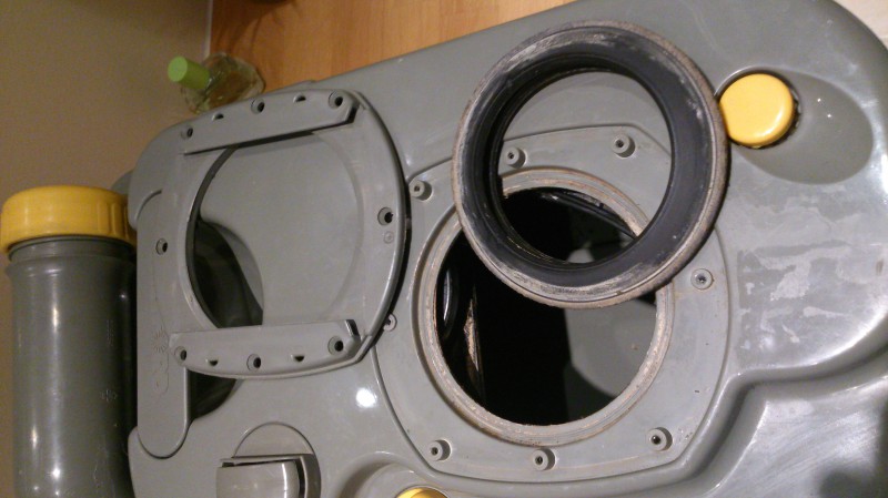 Tämän jälkeen voitelin oliiviöljyllä tiivisteen ja liu'utin läpän paikoilleen: