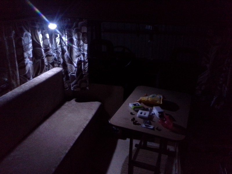 Sitten ihan pirullaan otin tommosen 15 dollarin megamurkulan ja olihan siinä valoo  :o Ihan liikaa tommoseen paikkaan, sitä säteili kattoon ja sivuille tosi paljon mitä kamera ei näytä..