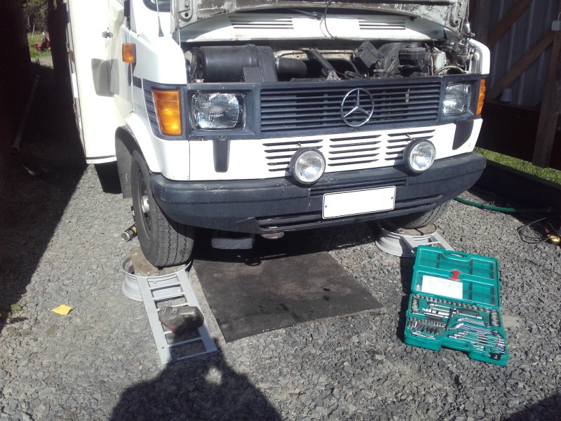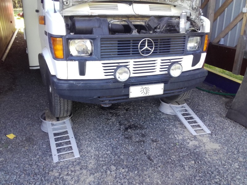 ![]() Onhan se melko &¤" paikassa, kuvasta voi saada kalpean käsityksen.. ![]() Mutta nytpä starttaa ku tulpaton mopedi, laitin kruunuksi vielä akutkin laturiin ![]() Samalla kun auto oli pukeilla tervailin vähän pohjaa, rasvasin olkalaakerit ja kardaanin sekä tein vakaajatankoon kuskinpuolelle hydrauliletkusta uuden kumipuslan kun entinen oli kadonnut, selvispä mikä siellä joskus kolahteli montuissa.. Pysyi sentään nipat paikallaan olkatapeissa, joskus vaan lähtee koko pelti lätkä irti!
