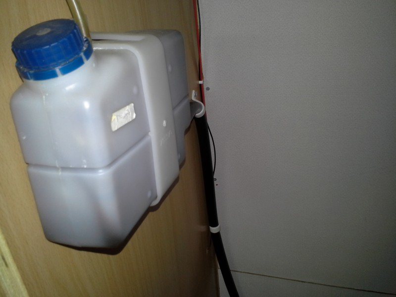 Nestettä systeemissä ilmeisesti on, ainakin paisarissa kelluu puolivälissä..