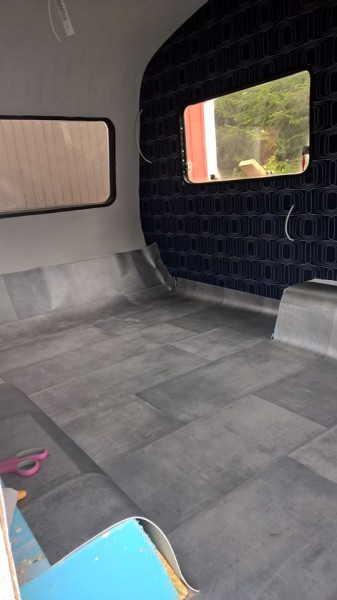 Lattiamatto: hankittu ja leikottu mittaan, paikallaan (joskin purkki pitää vielä kiinnittää runkoon --> mattoa ei ole liimattu, eikä todennäköisesti liimatakaan)