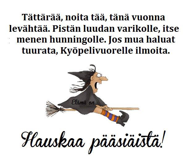 Sittenkö lentelette luutalla niin muistakaa turvavyöt!  lämmintä ja rauhallista pääsiäistä