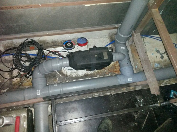 Ilmawebasto tulee lattian alle pöhisemään. Ilma kulkee lattian alla isoissa putkissa eri hytteihin. Ylöspäin lähtevä putki on ilman tuloputki, jonka väliin tulee vielä perus puhallin. Sillä saa sitten myös tuuletettua ilman webastoa.