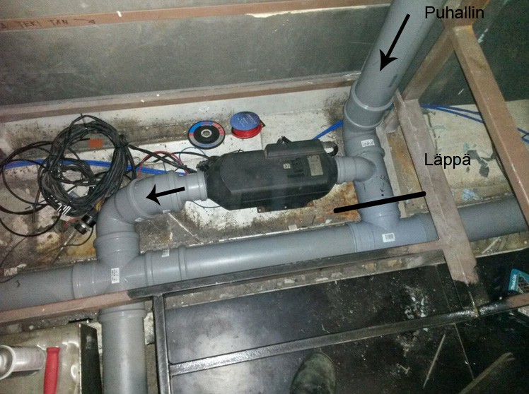 Tuleeko tohon putkistoon joku venttiili kun imu ja lähtö ovat yhdessä?