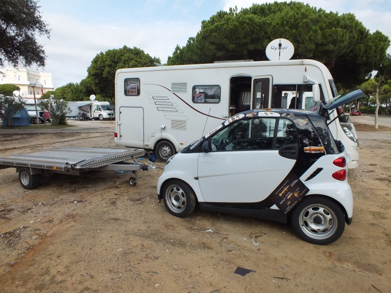 11,70 m Hyymeri + traileri ja sen pääällä Smartfortwo.