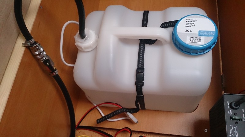 Vaunussa oli hieman takapaino-ongelmaa, joten siitäpä idea toiselle matkan aikana käytettävälle pikkusäiliölle.