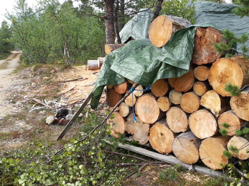 Tarinan alku; meillä on pohjoisessa muutama mökki yksityistien päässä. Tämän tien varteen tuodaan polttopuut rekalla ja lumien aikaan ne kuljetellaan kelkalla mökeille. Tein syksyllä valmiiksi pinon, joka oli huonokuntoista kelopölliä kuljetettuna sadan kilometrin takaa.