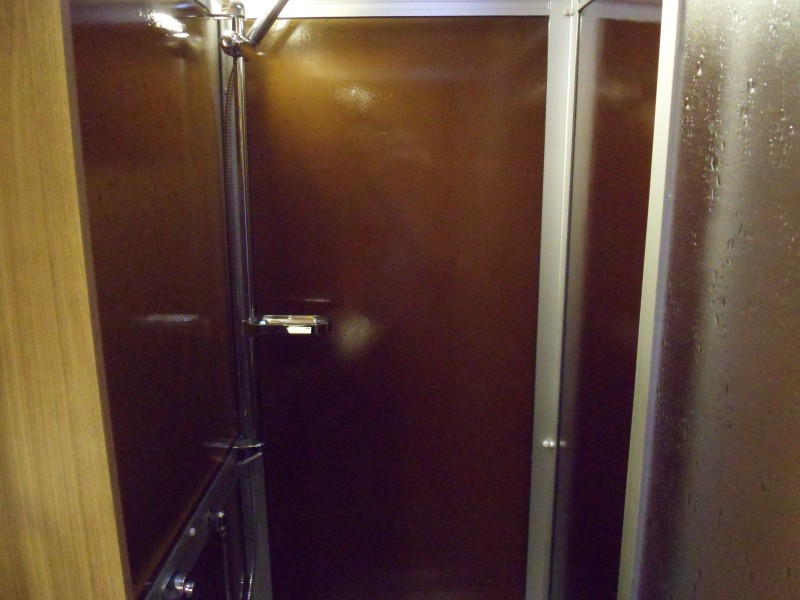 Miksi ei ? Aika monessa painoraja tuolle alaslaskettavalle oli 200 kg joten aikuisetkin siellä menisi vallan mainiosti ja jos aikuiset haluaa iltaa viettää rauhassa pöydän ääressä niin siinähän se menee kuin muulloinkin ja sitten kun uni alkaa maittamaan niin ei muuta kuin laskee sen sängyn napista alas. Muutamassa autossa tuo sänky tuli oven eteen mutta tuskin kukaan keskellä yötä ulos haluaa joten senkään ei luulisi haittaavan...sitten kun aamulla herää niin sänky napin painalluksella ylös ja ei kun pöydän ääreen aamupalalle. Alas laskettavat vuoteet Ne vuoteet on jo valmiina Mutta moni moitti suihku hommaa..