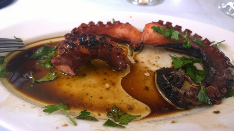 No nyt on kutvelehdittu ;) Kalakaupasta mustekalaa ostettiin, 5minuuttia keittäen ja sitten grilliin. Oli hyvää kera sitruunan, riisin, tsatsikin, salaatin. Pottu kylmää kuivaa Roseta kyytipojaksi. Hohhoijaa kun on raskasta  8)