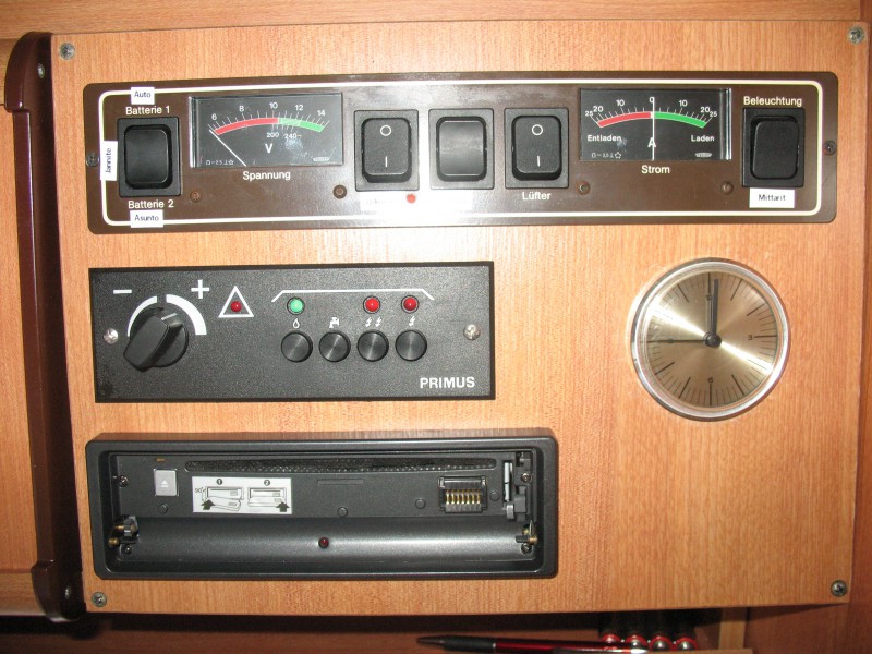 Minulla on Dethleffsissä muuten samannäköinen kello kuin tuo, mutta numeroina roomalaiset numerot. Siinä on 1,5 voltin paristo. Uskoisin, että yleensä quartsikelloissa on sen kokoinen paristo, siis jännite.