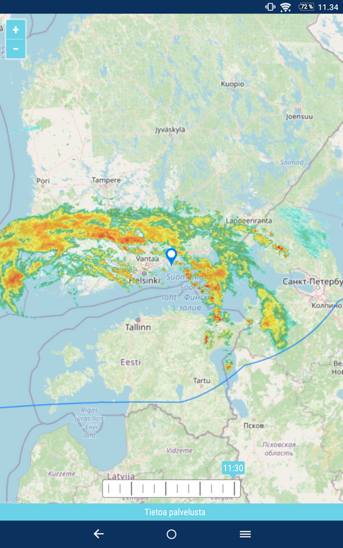 Se olikin aivan sama, mitä Ilmatieteen laitos käyttää. Hyvin suppea, eli "sataako kohta" on melkein sama, kuin katsoisi ikkunasta.