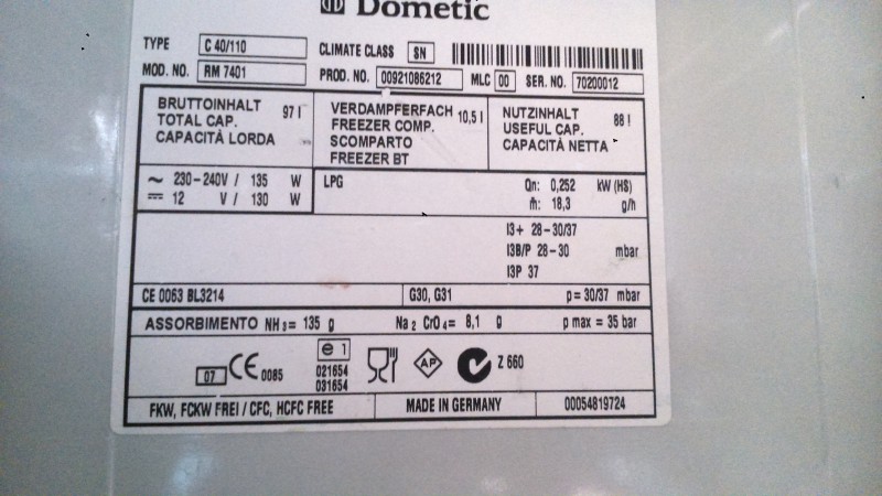 Jääkaapin sisältä löytyy, yleensä takaseinä ala-osassa tai vasen sivuseinä. (vanhemmissa monesti paperinen lappu josta tekstit kuluneet pois)