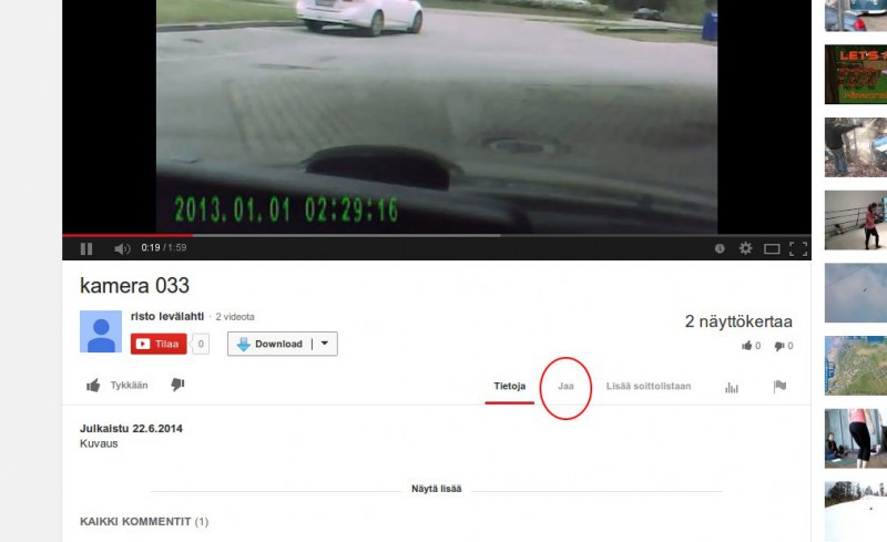 Helepottais kummasti kattomista jos klikkaisit tuolta youtuben sivulta "Jaa" ja sieltä kopsaist linkin, niin silloin näkyisi näin: