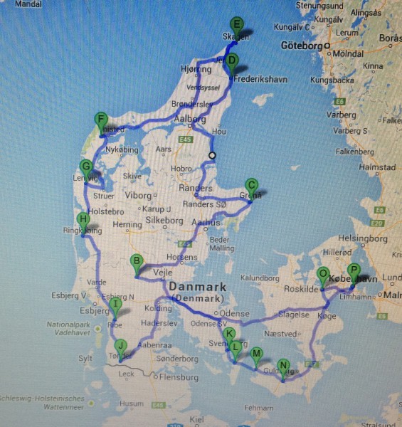 Katselin tuota sinun mahd. reittiäsi, 2 viikkoa on aika lyhyt aika, jos meinaa koko Tanskan kiertää. Me oltiin 11 päivää reissussa ja ajettiin sentään suoraan Tanskaan Helsingborgin kautta ja tultiin Göteborgin kautta pois. Kilsoja tuli joku 2500 ja tuntui että olisi helposti saanut menemään vielä viikon kauemminkin.