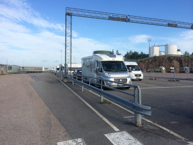 Laivanpurku meni tietenkin juuri päinvastoin kuin laivaan meno eli kun lautalle ajettiin toisena karavaanarina sisään niin pois lähdettiin sitten viimeisten joukossa. Alkumatka Tukholmaan ei paljoa eronnut kotimaisesta tiestä, yhtä huonoa ja paikattua asfalttia, moottoritielläkin oli uria aivan kotimaisten teiden tyyliin.