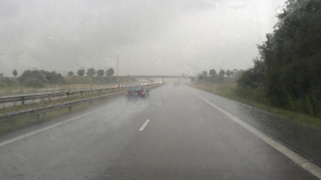 Puolen päivän aikaan taivaalle alkoi tiivistyä tummanharmaita pilviä jolloin oltiin ohitettu juuri Halmstad ja hiukan ennen Ängelholmia alkoikin ripsimään vettä joka sitten hiukan ennen Helsingborgia muuttuikin kaatosateeksi joten ensimmäiseksi kunnon pysäkiksi suunniteltu Sofieron linna ja sen ympäröimä puutarha ei oikein enää kiehtonutkaan joten jatkoimme vesisateessa joka välillä moottoritiellä olikin sitten varsinainen kaatosade...