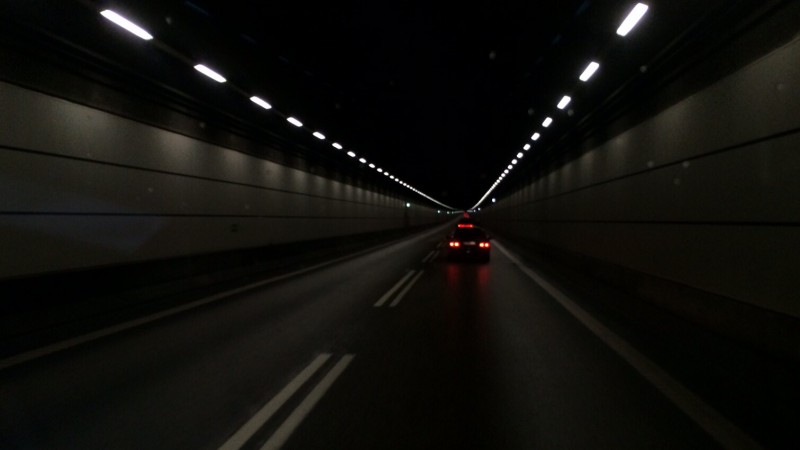Tunneliin sitten tultaessa sade oli jo loppunut täysin ja Norjan tunneleihin verrattuna kosteus ja pimeys puuttui täysin tästä Juutinrauman tunnelista ja tuo tunneli oli ohi muutenkin ennenkuin siihen edes kerkesi tottua joten ulos tultaessa olikin olo että tässäkös tämä lysti nyt sitten oli....