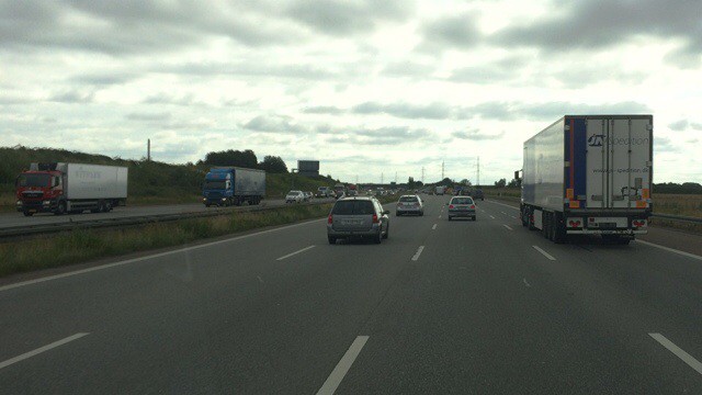 Ulkona sentään paistoi jo aurinko joten pystyi paremmin sitten keskittymään tanskalaiseen liikenteeseen ja joka useine kaistoineen ja sujuvine ohituksineen alkoikin nopeasti tarttumaan myös savolaiseen ensikertalaiseen, liikenne oli sujuvaa ja takanatulevat eivät vilkuttaneet valoja tai olleet puskurissa kiinni kuten kotimaassa on tapana karavaanareiden suhteen....huomaa kyllä että täällä on matkailuautoihin / -vaunuihin hiukan eri mentaliteetti autoilijoiden mielessä.