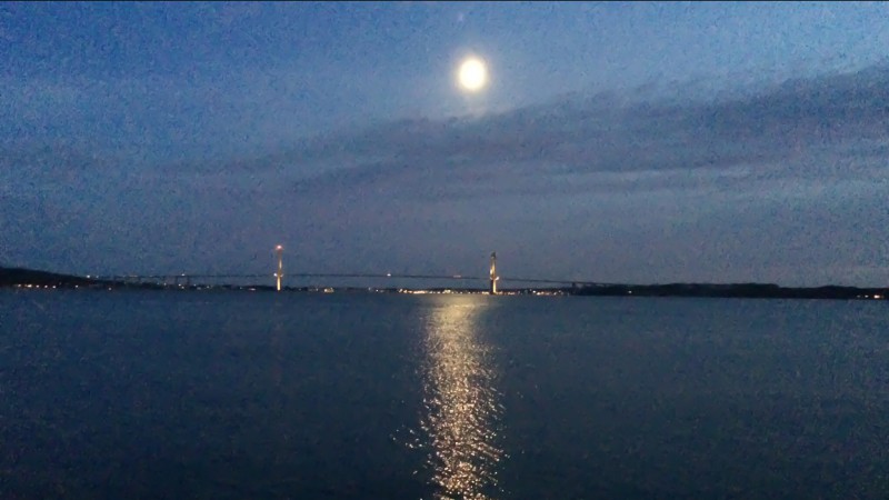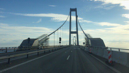 Ison-Beltin tullimaksukin (360 DKK = 48 €) meni jonottamatta ja nyt saatiin ajaa silta aurinkoisessa illassa, tästä sillasta jäi jo parempi maku itsellekin kun lapsetkin näki useammankin laivan alapuolellaan ja olihan tässä jo sitä ylittämisen makua jo aivan eri tavalla ja oli n. puolet halvempikin, kilometritkin karttuivat siihen tahtiin että Ducatossakin tuli uusi kymppitonni korkattua jo päivää-kahta ennakoitua aiemmin.