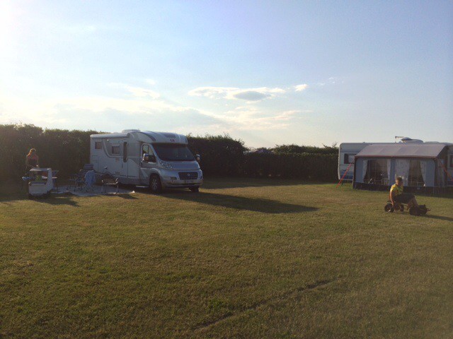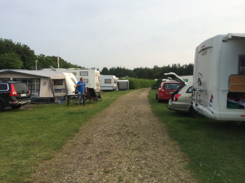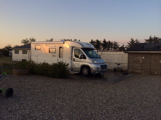 Pojista olikin meressä hauskempaa kauemmin kuin arveltiin joten tällä tauolla menikin lähes pari tuntia joten alunperin suunnitelmissa ollut Thyboroniin meno saa jäädä huomiseksi ja alettiin sitten etsimään yöpymispaikkaa ja ACSI:n sovelluksen mukaan suoraan 181 - tien varrella oleva Fjand Camping & Grill sopi mainiosti meille, hinta sähköineen yhdelle vuorokaudelle oli 255 DKK eli 34 euroa.