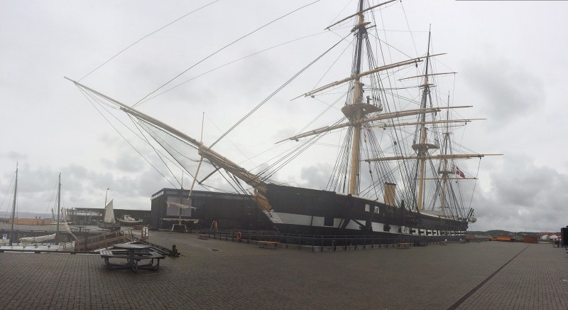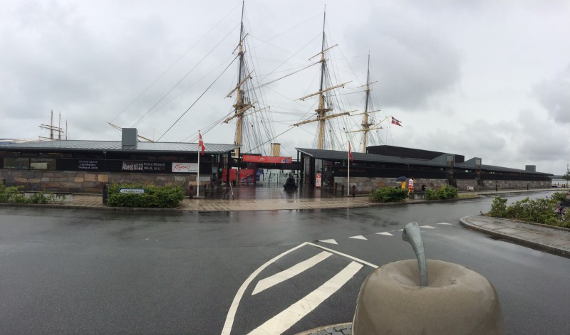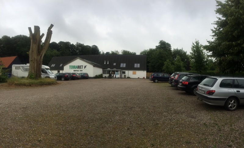 Mutta jos mennään reilun työpäivän verran ajassa taaksepäin niin päästään aloittamaan päivän tapahtuma joka toisti samaa kaavaa kuin aina ennenkin tähän asti, eli klo 13 tienoilla ajettiin leirintäalueen portista ulos, tällä kertaa n. 20 km matkan päässä oli Jyllandin Fregatti jonka mastot kohosi kyllä sen verran korkealle että sen sijainnin löysi huoletta ilman navigaattoria ja liekkö sunnuntaista johtuen parkkipaikallakaan ei ollut kuin yksi linja-auto jonka sivulle Adrian saattoi hyvin ajaa, henkilöautoparkki sitten olikin täysi.