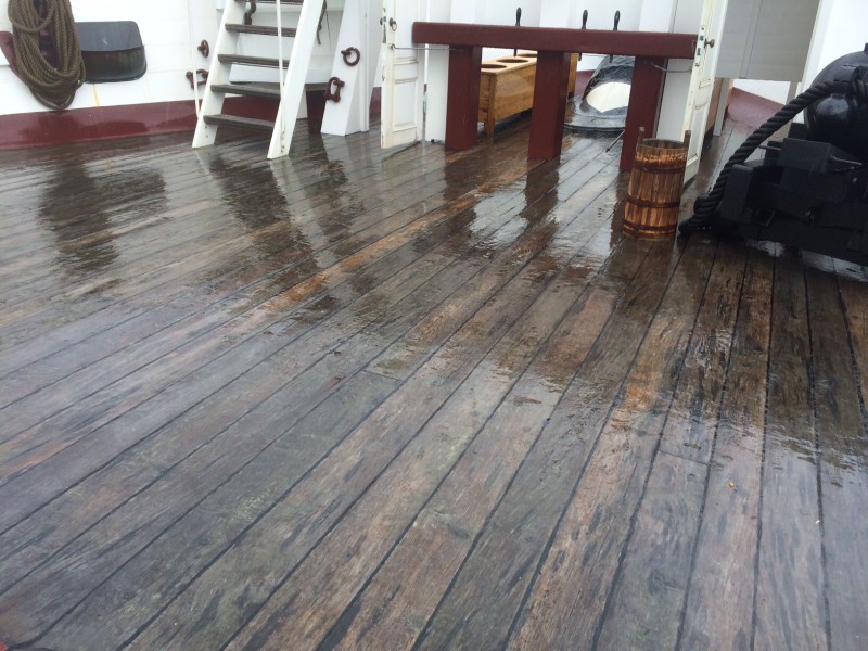Hienoisesta vesisateesta johtuen kansi oli todella liukas, miten ne laivamiehet ovatkaan pysyneet kannella myrskyssä.