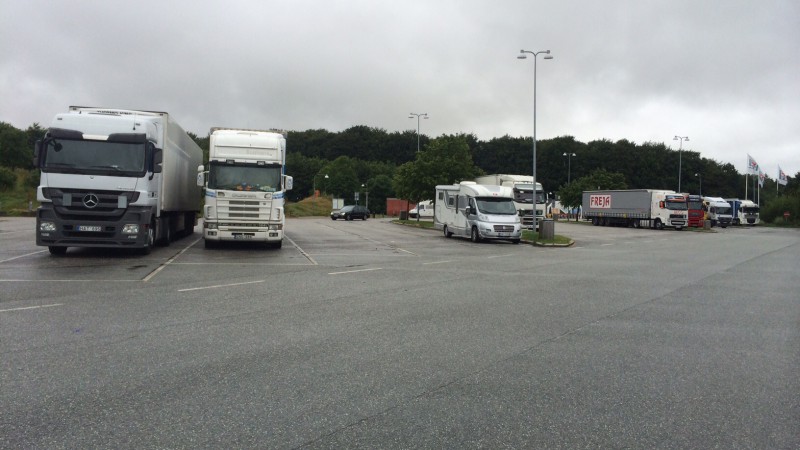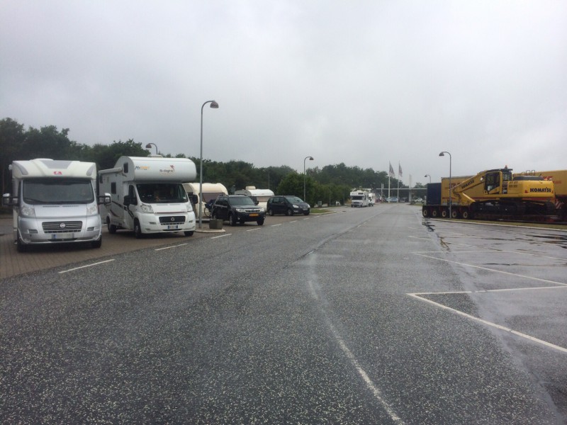 Odensen jälkeenhän olikin jo Ison-Beltin sillan ylitys ja ensimmäiselle taukopaikalle sillan ylityksen jälkeen pidimmekin ruokatauon jossa oli jo porukkaa todella paljon, vettä sitten alkoi tästä hetkestä satamaan...