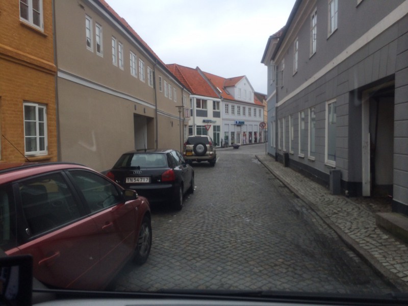 Taukopaikalta ajeltiin sitten Vejle nimiseen kaupunkiin jossa ensimmäiseksi ajettiin tankkaamaan Ducato kun sattui halpaa naftaa kohdalle, dieselin litrahinta oli nyt jo alle 10 DKK eli 9.97 ~ 1.33 €/litra, siitä sitten lähdettiin kaupunkia ihastelemaan umpimähkään ja juurikin sen umpimähkäisyyden vuoksi huomattiin ajautuvamme yksisuuntaiselle ja kapealle tielle joka johti parkkipaikalle ja siellä oleskeleviin resuisen näköisiin miehiin, mitä narkkareita lienee olleet, siinä peruutellessa kiinnitin huomion yhteen epämääräisesti pyörivään kaapin kokoiseen ukkoon joka tähyili meihin päin ja saman tein kuulin vaimon kysyvän että onhan ovet lukossa, katsoin että punainen nappi näkyy loistavan kojelaudassa ja kun sain ykkösen silmään niin huomasin security-turvaliivillisen motoristin tulevan oikealta puolen ja suuntana sillä näytti olevan sinne sen kaapin luo....taisi ollakin se motoristi jota se ukko silloin tähyili..  :o mutta hiukan se kytkinjalka tuntui tärisevän kun tuollaiselle kadulle eksyin. :-\