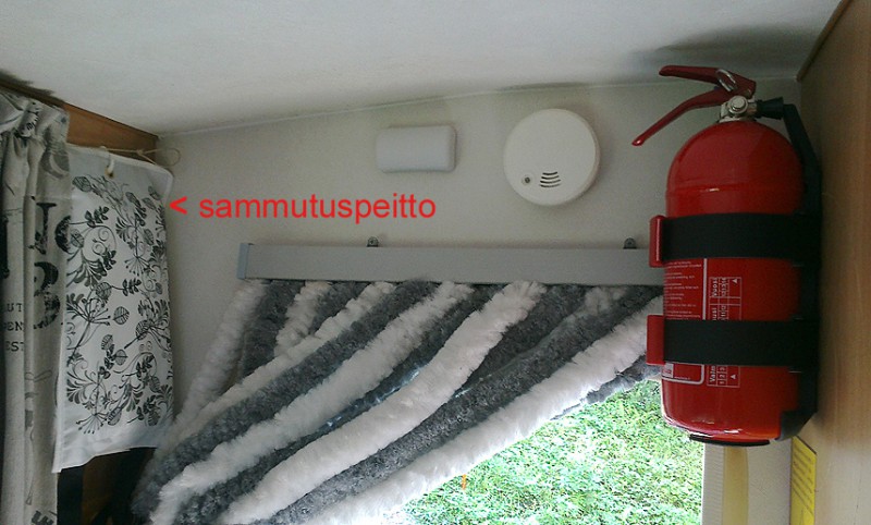 Täällä "palosuojat" ohjaamon ja keittiön välissä ulko-oven päällä. Sammutin tarkastettu.