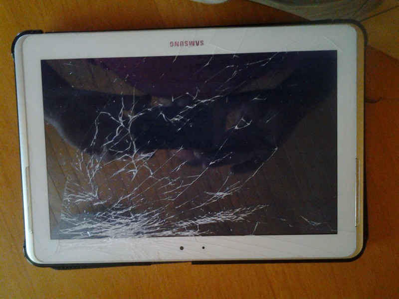 Tämmöinen tabletti ja lasi tuhannen palasina, muuten toimiin aivan normaalisti.
