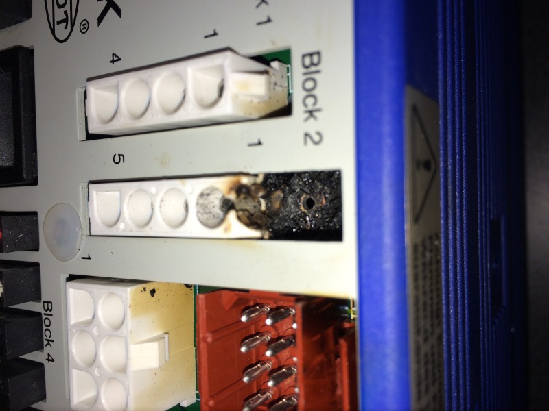 Liitin Block1 pitää myös irroittaa kun sitä kautta tulee myös D+. Normaalisti riittää kun estetään kaapille menevä jännite, mutta Alanin piirilevy on palanut niin pahasti, että on syntynyt hiilisilta.