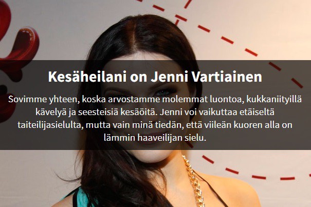 Jenni Vartiainen. Aakku on näköjään ehtinyt hänet varata. Täytyy etsiä jostakin uusi kesäheila