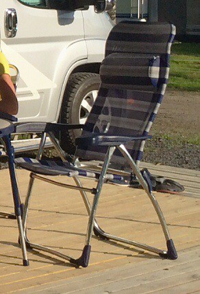 Ootellaan josko sitä minua arvovaltaisempia karavaanareita pyytää kuvaa ottamaan niin nähdään millainen Crespon tuoli on kyseessä.  Joo, totta töriset, lapsiperheessä ei markiisin alla istuta kuin ruokailua varten ja kahvitteluun, silloin on vaimon kanssa mukava istuskella korkeaselkänojaisee n ja vetäistä kahvoista hiukan lokoisempaan asentoon.