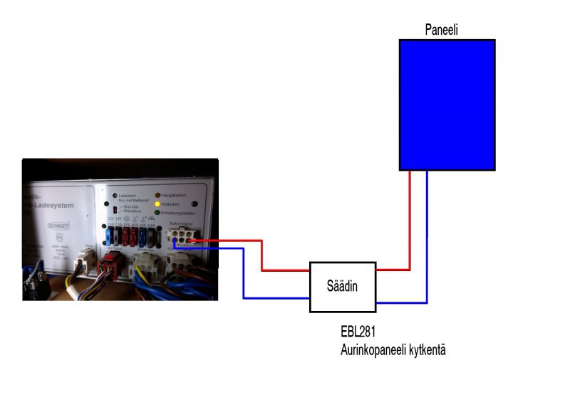 Mihinkä tuo paneeli pitäsi kytkeä tuossa laturissa ? Oma laturi on EBL 4-281.
