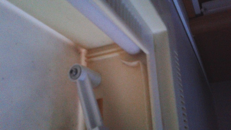 Minä pienellä tasakärkisellä ruuvimeisselillä irroitin varovasti nuo pyöreät ja alta löytyi ruuvit joilla oli kiinni.  Sen jälkeen oli helppo korjata ja takaisin laittaa.