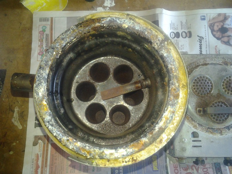 Ok pitää putsata myös ne suuttimet sitten kun käytän uudelleen auki pannun. Ajattelin hiekkapuhaltaa ja maalata kuumankestomaalilla tuon pohjalevyn. 600 astetta merkinnällä on pari puolikasta kilikali pulloa jäänyt tilley lamppujen remontista ne joutaa suhauttaa pois.
