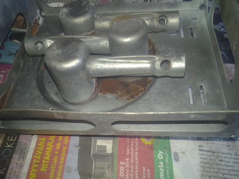 Palotila ja pohja alapuolelta ennenn putsausta. Putket suuttimineen otin pois pohjasta en kylläkään tehnyt niille mitään paitsi puhaltelin päälypuolelta paineilmalla.