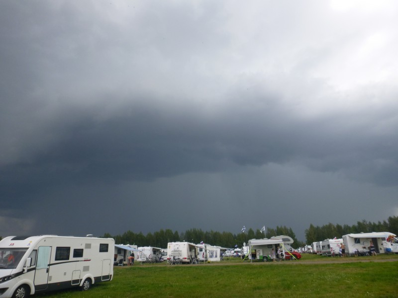Tulossa ukkos myrsky,jus kuuluttivat,että liput alas ja tarkastaa markiisin kiinnitys..