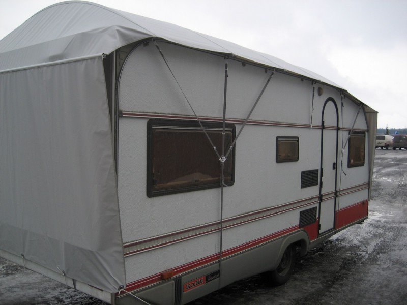 itselläkin tuollainen. Laatu on kyllä hyvä ja noihin epäilyksiin että ei ilma kierrä tai hankaa maalipintoja niin voin sanoa että sellaista ongelmaa ei ole koska katto jää tavallaan ilmaan reunoilta ja päistä (15cm).