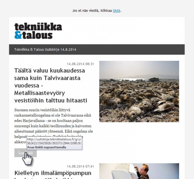 Kannattaa aina (varsinki html-muotoisissa s-posteissa) ennen linkin avaamista katsoa tilariviltä minkälaiseen osoitteeseen se ohjaa. Jos vähääkään epäilyttää, niin on avaamaatta, esimerkki (turvallinen);