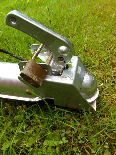 On ihan yx hailee vaikka väännät minkä lukon siihen kahvaan, oli sitten mitä materiaalia nyt sattuu löytymään. Ammattimies joka tilaustyönä määrätyn vaunun hakee ottaa repusta akkurälläkän, poistaa esteen ja vaunu koukkuun, valitettavasti.