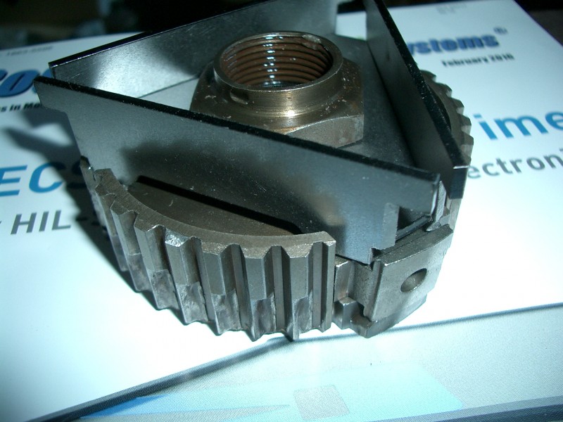 Kuva CIMG1936 Keskiökappale, alla synkronirengas. Liikerajoitin hahmotuskuva.