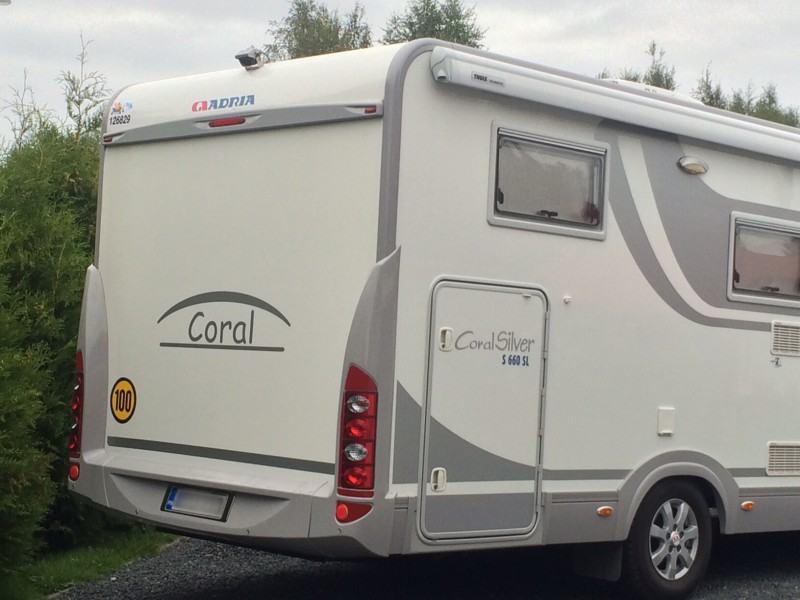 Joo, vein tuon takaovessa olevan Coral tekstin kuvan kanssa malliksi tarraliikkeeseen ja lupasivat silloin tuon fontin onnistuvan mutta eipä vaan ollutkaan sama, no tulivat hinnassa sitten vastaan ja jotain silloin alkuhuumassa, silloin vuoden ikäiseen Adriaan piti saada uutta. Nyt omaan silmään haittaa nuo siniset Adria tekstit ylhäällä jotka vaihtuvat hopeiseen ja tuo punainen logo tummanharmaaseen niin samalla vaihtuu mallinimen fonttikin oikeaan.