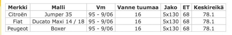 Tämän mukaan jako on mainitsemasi 5 x 130, kyseinen Adria lienee Maxi-alustainen.
