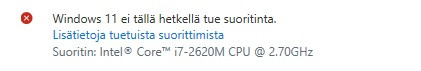 Mites kauan nämä wintoosan 10 päivitykset pysyy voimssa, kun sanoi että vain 7vuotiaseen lenovoon ei saa win 11 kun puttuu. Ei tue suoritinta ja turva piiri puuttuu.