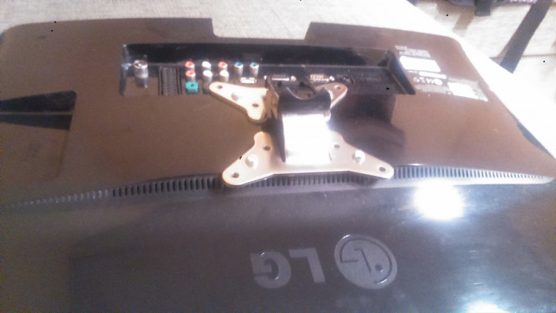 ..kuvassa aiempi töllö. Tässä LG ja vesa-kiinnikkeen puolisko, joka irtoaa muusta telineestä lukituskynttä nostamalla..