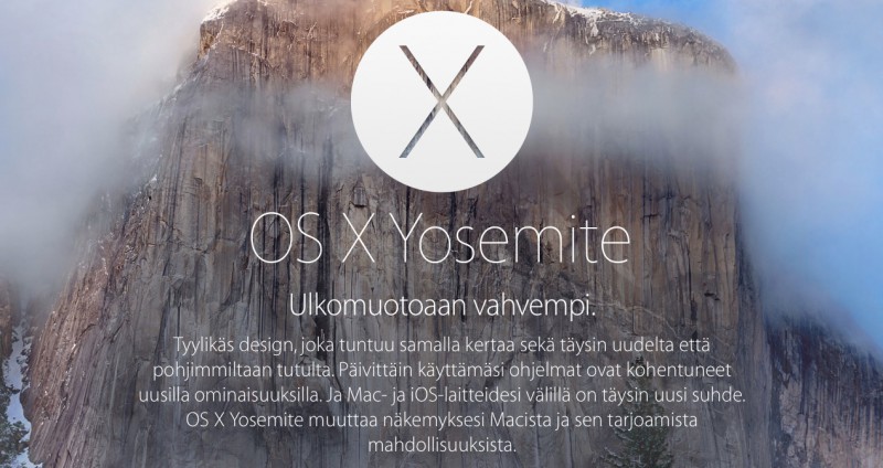 Yosemite päivitetty pöytäkoneeseen ja vaimon läppäriin. Hyvin toimii ja näyttää hyvältä. Samalla mahdollistui puhelujen ja viestien hoitaminen myös pöytäkoneella. Edellyttäen tietysti, että puhelimena on iPhone...