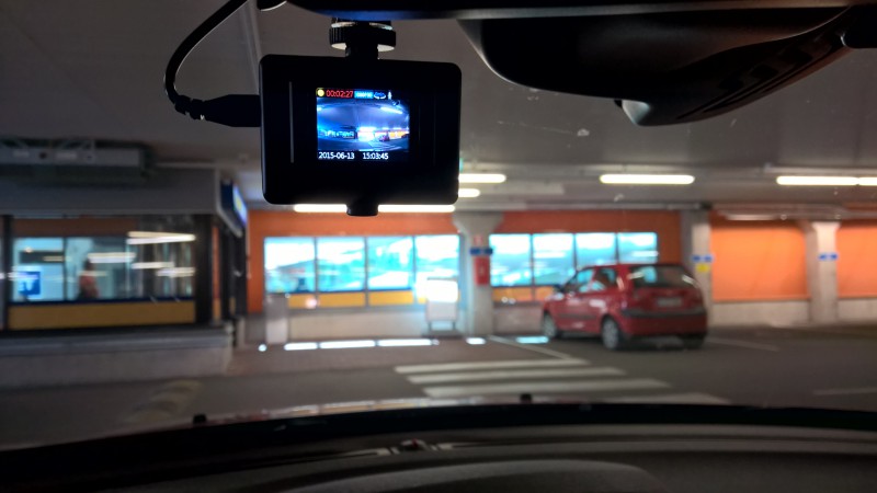 Tompan takana on Transcend DrivePro 100  :D Wifin takia kameraan ei tarvitse koskea - puhelimella/tabletilla etäyhteys..