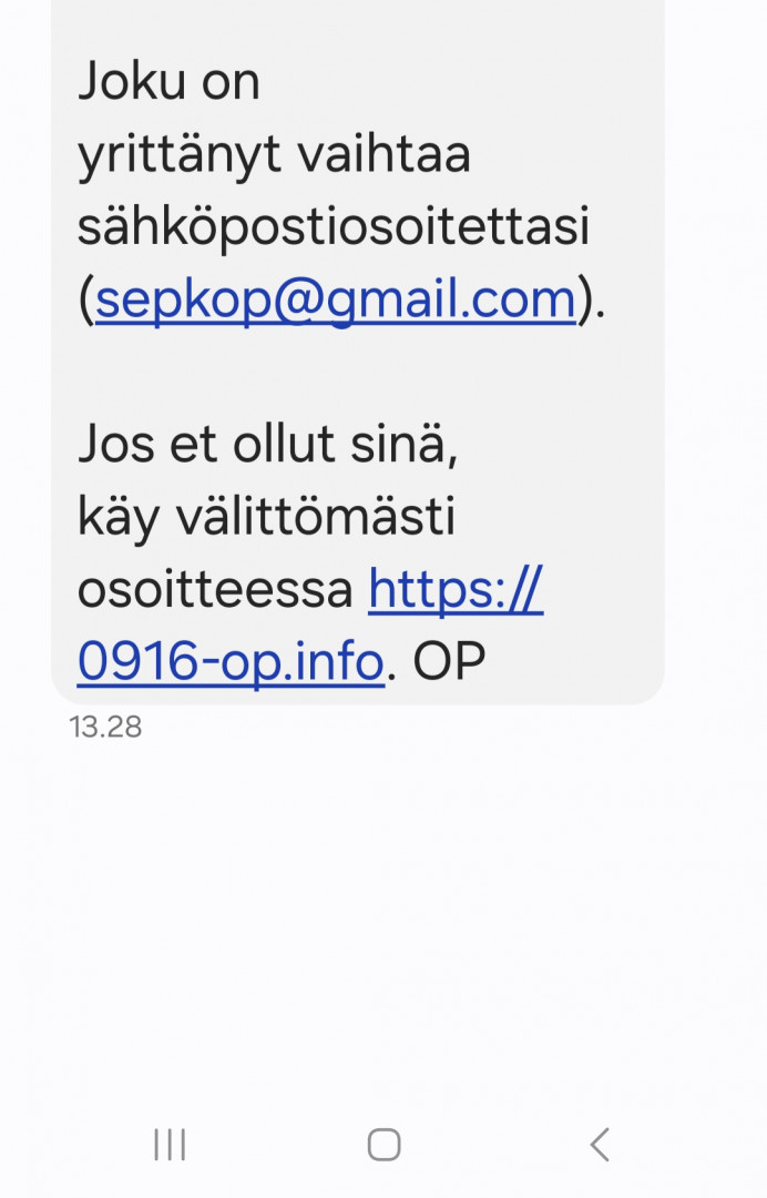 Jos epäilyttää, niin kirjaudu normaalisti verkkopankkiisi ja tarkista osoite sieltä, ei tekstiviestin kautta.